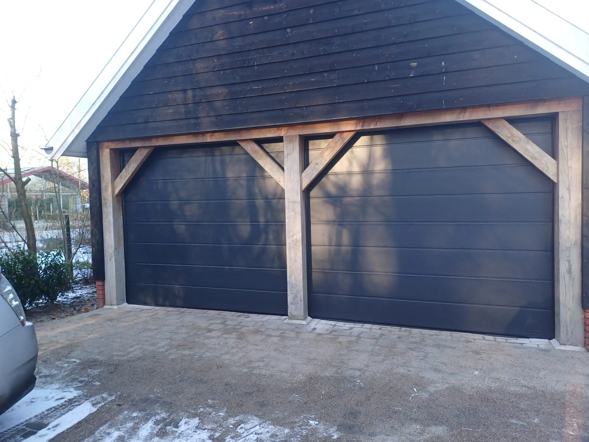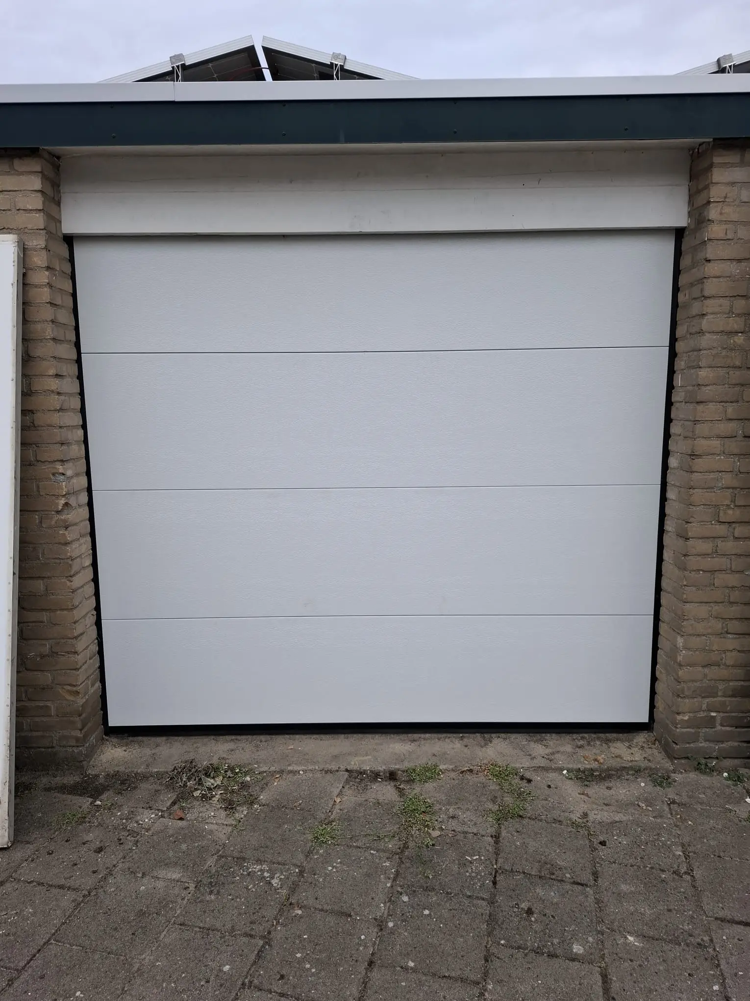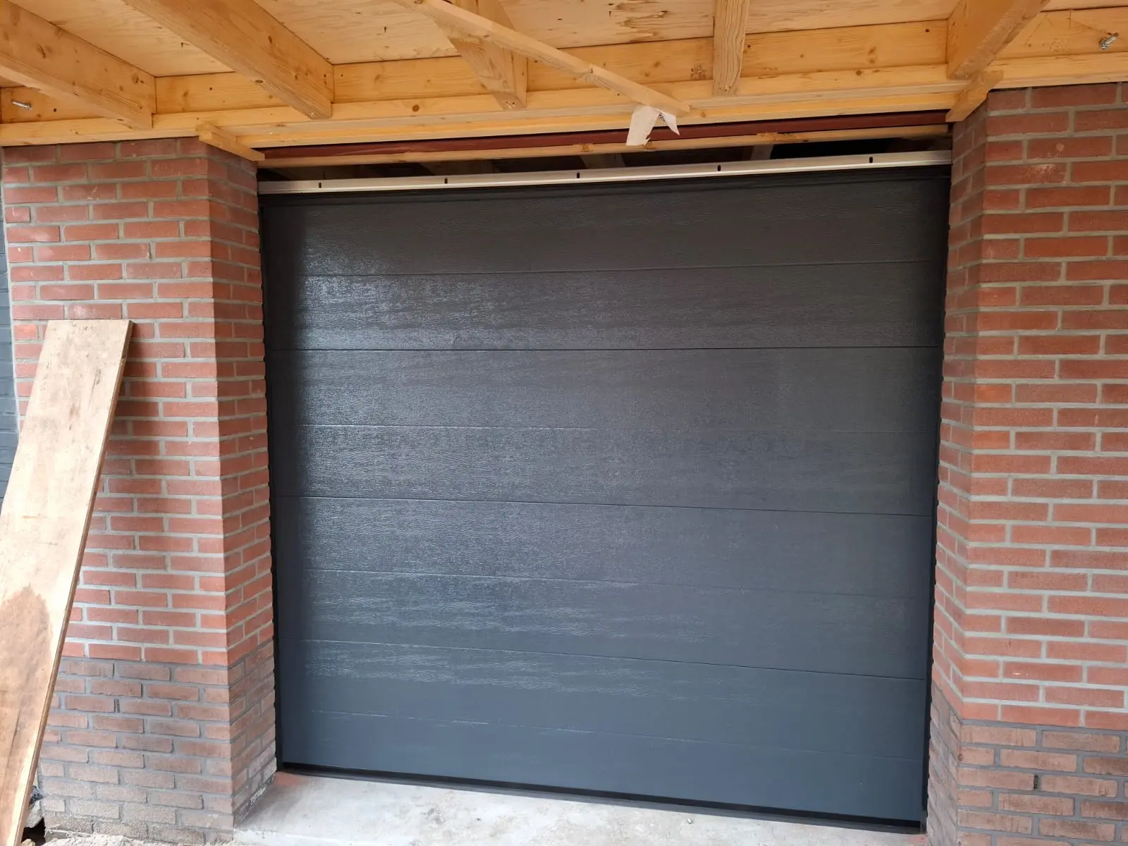 Na de klassieke kanteldeur is dit het meest toegepaste type garagedeur in Nederland. De panelen sluiten strak en bieden een hoge isolatiewaarde, in veel situaties zelfs beter dan HR++ glas. Het systeem beweegt verticaal, waardoor vloer- en buitenruimte optimaal bruikbaar blijven. Dat maakt sectionaaldeuren praktisch voor garages waar regelmatig een auto staat of waar een grote, vrije doorgang nodig is.