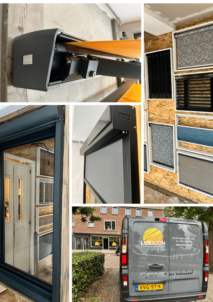 * Terrasschermen, meer dan 6 werkende modellen * Screens (ook op Solar) * Rolluiken (ook op Solar) * Garagedeuren (4 werkende modellen) * Horren voor ramen en deuren * Raamdecoratie * Markiezen * en nog veel meer